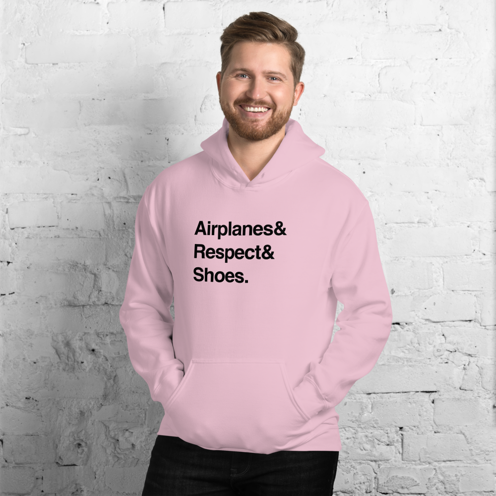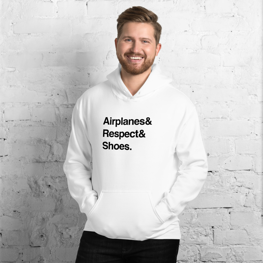 "Airplanes & Respect & Shoes" Helvetica Hoodie - UNISEX - 8 COLORS