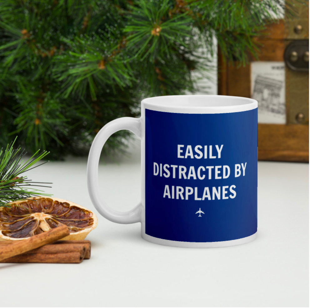 "EASILY DISTRACTED BY AIRPLANES" Mug - 11oz