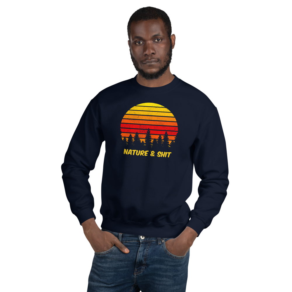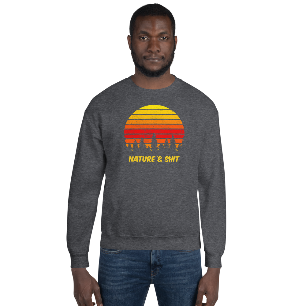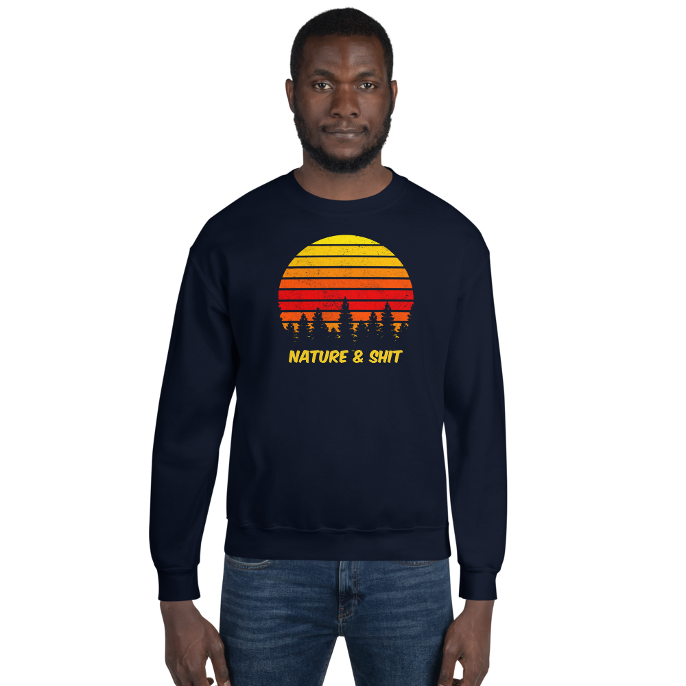 Don't mind us, we're just out here enjoying some Nature & Shit! Vintage, retro sunset and forest design on a fab crew neck sweatshirt.
