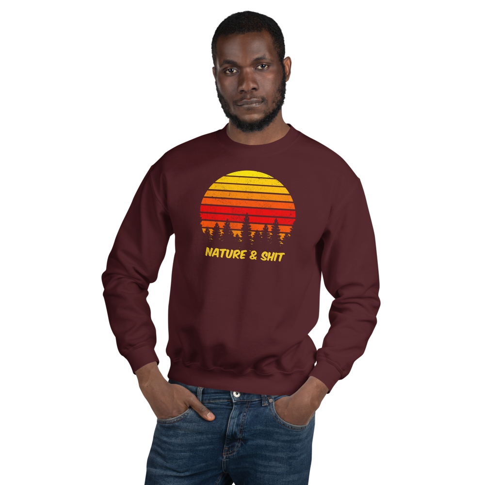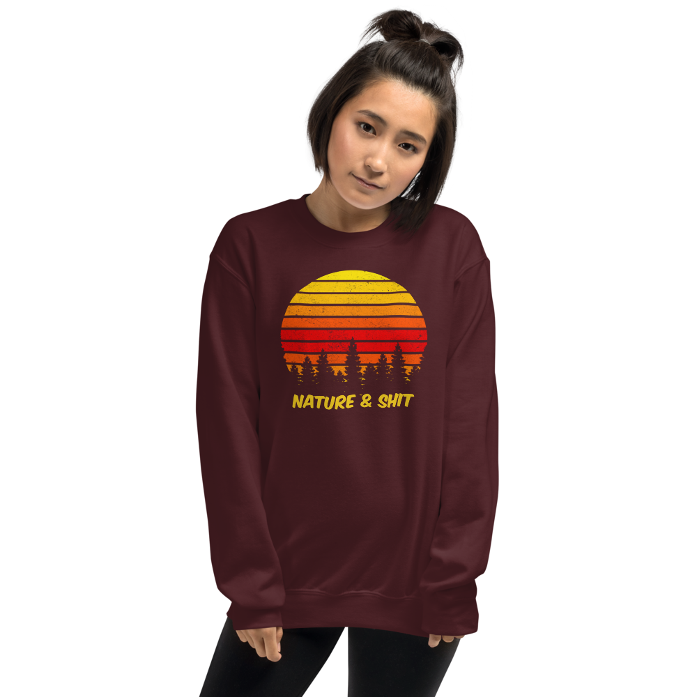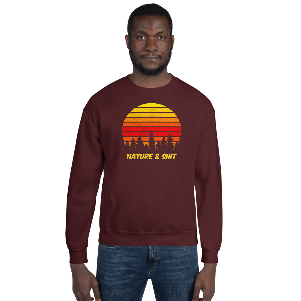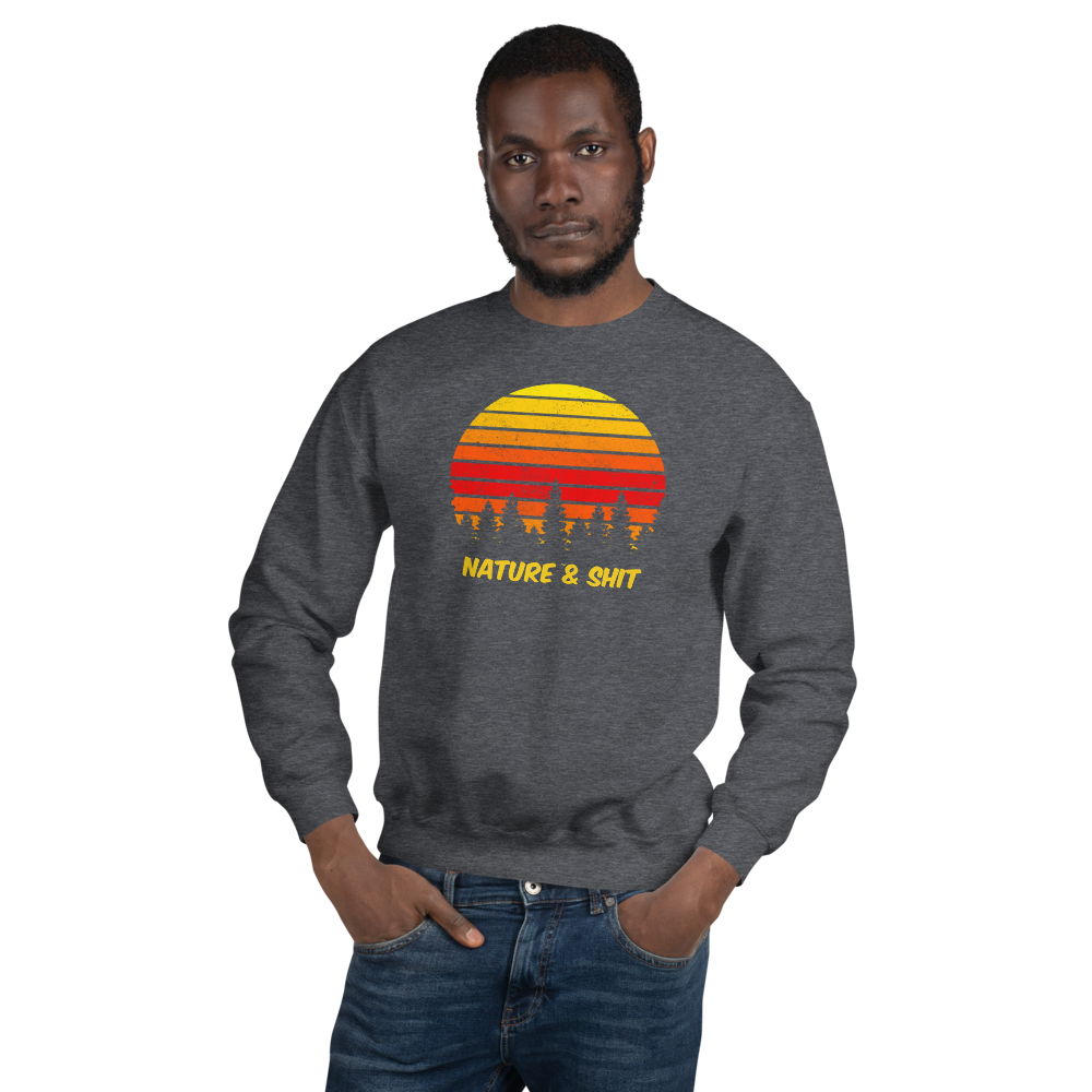 Don't mind us, we're just out here enjoying some Nature & Shit! Vintage, retro sunset and forest design on a fab crew neck sweatshirt.