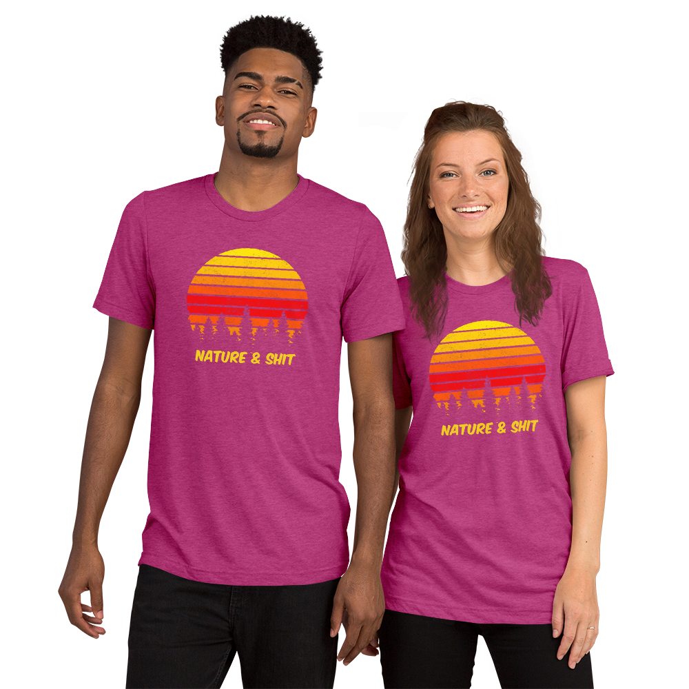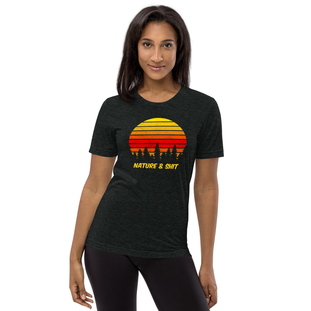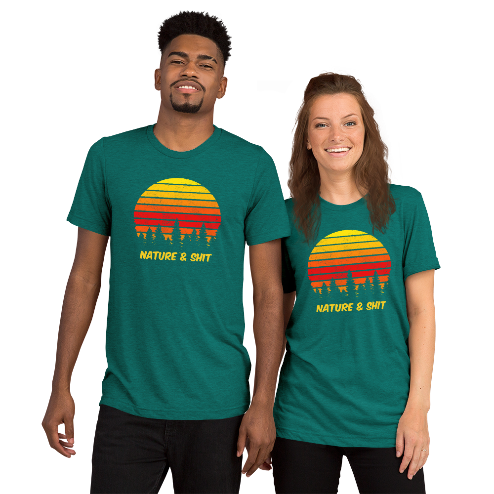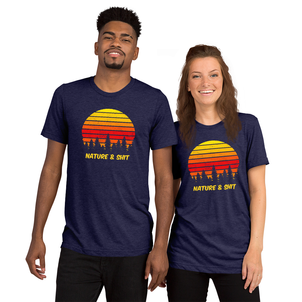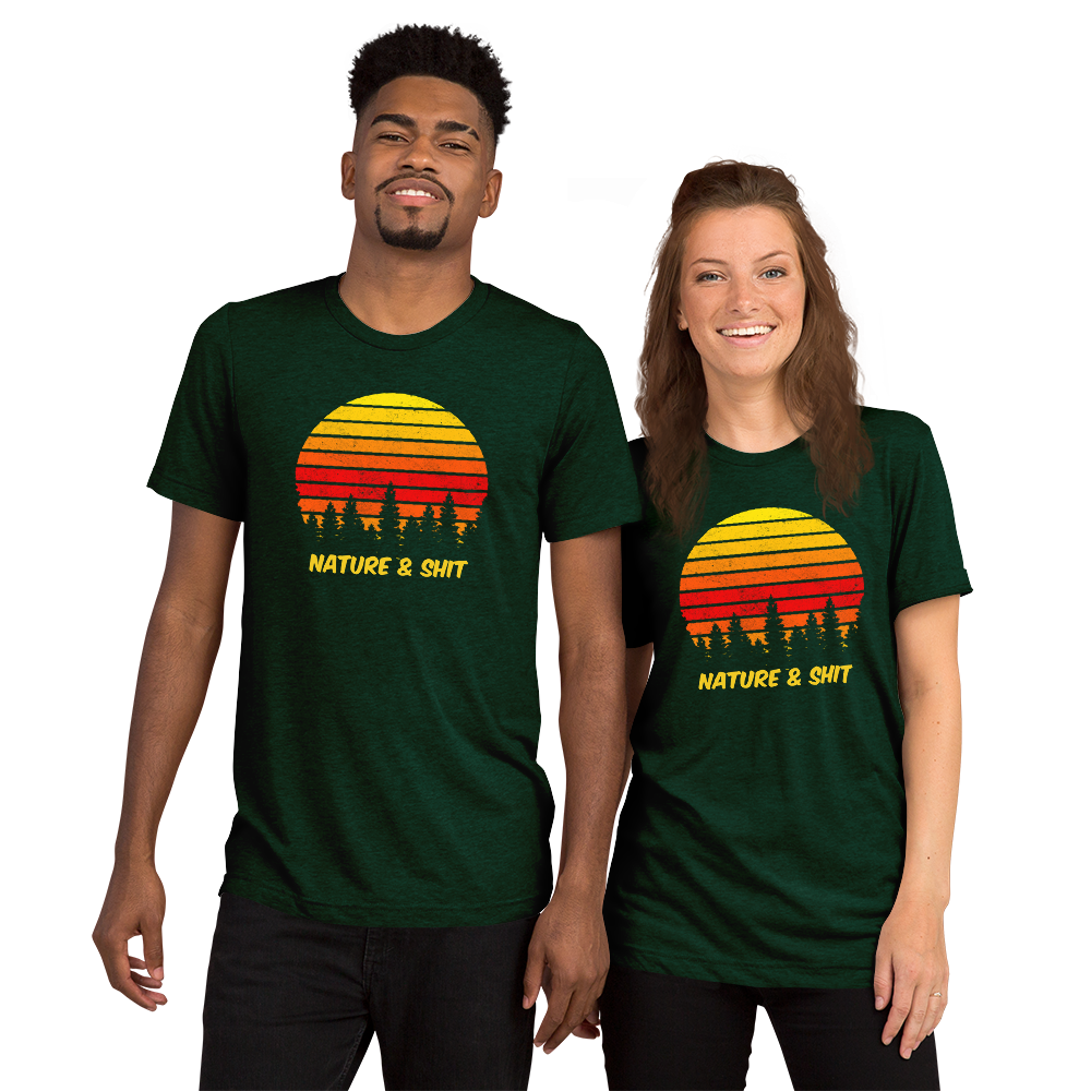 Don't mind us, we're just out here enjoying some Nature & Shit! Vintage, retro sunset and forest design on a fab tri-blend fabric tee!